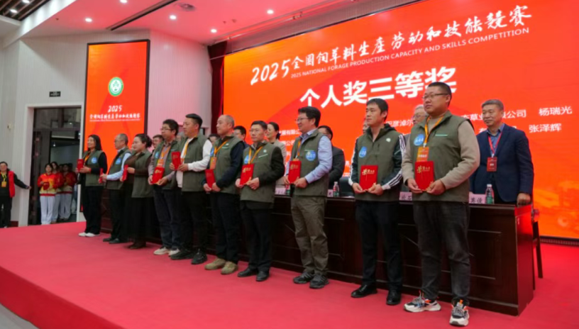 圣牧草业高度重视本次行业盛会,由饲草一中心总经理杨瑞光率领精锐团队参赛。面对全国范围内的强劲对手,团队凭借扎实的理论基础、娴熟的操作技能与高效的团队协作,在激烈角逐中沉着应战、奋勇争先,最终载誉而归:圣牧草业团队凭借全面的综合实力与出色的临场发挥,荣膺团体三等奖;饲草一中心总经理杨瑞光与技术经理许涛,则凭借深厚的专业功底、精湛的实操技艺以及稳定的赛场表现,双双斩获个人三等奖。