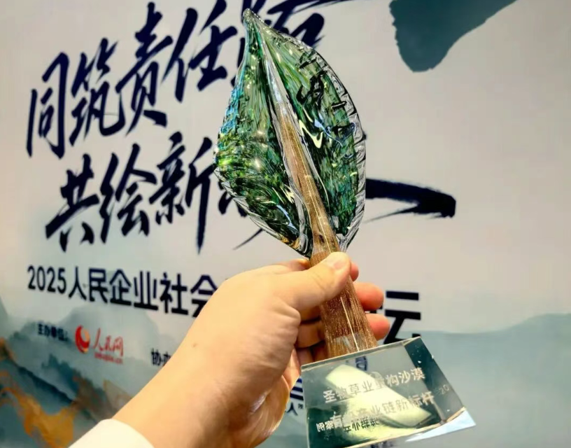 2025年11月1日,由人民网主办的2025“人民企业社会责任论坛”在北京盛大开幕。本届论坛以“同筑责任路 共绘新未来”为主题,汇聚了来自政府部门、知名企业及主流媒体等各界的重量级嘉宾,深入探讨市场主体如何更好地发挥在企业社会责任领域的带动与支柱作用。同时,论坛备受瞩目的“2025人民企业社会责任案例”也正式发布。圣牧草业凭借其创新构建的“重构沙漠有机产业链新标杆”绿色发展体系,在激烈竞争中脱颖而出,荣膺“绿色发展案例”,彰显了其在绿色发展领域的卓越成就与标杆影响力。